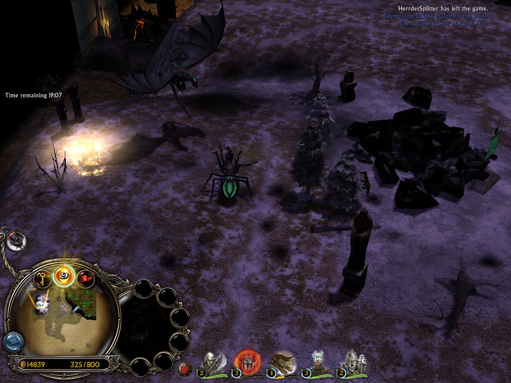 This ('KiLL3R') is my take on the current 'Hide and Seek KILLER' map in popular circulation ('KILLER'). In my own opinion I thought KILLER was fairly mediocre and was getting a bit old, despite being an incredibly successful gameplay type and being unrivalled in terms of other maps. I admit I have not changed the outline of the game at all, so everyone that knows KILLER should be easily ready to play KiLL3R with very little getting used to. I suppose this works in my favour as people might see this as an update - I did start the map from scratch but I suppose I went with the mentality of recreating KILLER with only a few adaptations, creating some more interesting terrain, spawning systems etc. but largely taking out what I thought were the bad bits of KILLER and putting in what I expected would be good. Outline of play: Players (6 in total) are split into hiders and seekers. There are 2 seekers and 4 hiders with a minimum of one player on each team (naturally). The seekers reside in their base in the top-right of the map, from which they will explore the wilderness where the hiders are hiding. The hiders have nothing but one custom hero each, which (if they have any sense in them) they will train up using the lairs on the map and hide (details of tactics to follow) and hope that the seekers will not find them. The seekers play normally (they can access all units rather than just their hero). The game begins (after a short intro) with 5 minutes in which to prepare for the hunt (train up heroes or build seeking units), after which the hunt will begin. The hunt for the heroes is the time left in which to find and kill the hiders - 30 minutes to search-and-destroy 4 targets - and if the hiders can avoid detection for those 30 minutes then they will win. Detailed comparison with KILLER: Changes to gameplay Hiding heroes no longer die when they enter the seekers' base. When a hiding hero trespasses into the base they will automatically run back across the bridge and get damaged a little as a warning. This can be defied by repeatedly clicking to move inside the base, for which the hero will receive continuous damage while it is inside the base (though the damage is not enough to kill very quickly). When the hero trespasses a certain distance into the base they will be teleported outside the base to one of three locations (randomly selected) a short distance outside the base. The effect of this is that the base cannot be damaged by hiding heroes at all and the hiding heroes which are teleported (against their will or otherwise) or force their way into the base will not die nor be teleported to safety to such an extent that repeatedly doing so would be a particularly effective escape tactic against a skilful and reactive opponent seeker. I find this system to work very nicely, though most people assume their hero will die so don't even try it. After the introduction, the wilderness is shrouded. This is just when the unexplored map is blacked-out until it has been explored. Once it has been explored you will be able to see buildings and trees and stuff as it was when you last looked. When you are present and can actually see it with an ability or unit, you can see everything (units in real time etc.). This means that hiders have 5 minutes to explore the wilderness and the seekers start from scratch when the hunt begins. I find it helps create a nice edge to gamplay as it adds in a tension - an uneasiness - about not having the map scouted out for you. This is less of an obstacle the more you know the map so first-time players are at a little disadvantage here (so what? It's good to reward the loyal, right?). Lairs are no longer indestructible. I decided that it was not realistic enough that players would be unable to kill lairs, but clearly there would still need to be the possibility for creeps to exist even if the lairs were all destroyed (explained in additions to gameplay). In short, heroes may now kill lairs as well as the creeps in order to boost XP levels. Additions to gameplay Built-in lairs In certain areas, built-in spawning systems are active during the hunt. These basically mean that even if all creeps are purged from the wilderness, more can still be found, though it can be a little dangerous. Let's make a sub-sub-sub list: Shelob's Lair Shelob and some of her children are poised to strike if hiding heroes dare to venture close to her lair to the north of the map. Shelob is particularly deadly to lone heroes and is present during the preparation for the hunt. If a hero dies in the preparation for the hunt, it is most likely her doing. Take care when heading her way, though it is an excellent area for levelling up. The Fire Pit The fire pit is a small corner of a dwarven ruin, which was destroyed by a volcanic eruption, which is still evident as you go in - lava creeps past in the north-west corner of the lamp. Be very wary when lingering here too long as you may fall victim to the fire drakes patrolling thier lairs (there are 2) or the Balrog which may appear during the hunt. This area is quite distinctly the most damaging of all areas, yet it is relatively easy to escape if you are quick on your toes. The Balrog will not stray from the fire pit unless lured out and once chasing a unit is easy to shake loose. The Ent Moot The Ent Moot is not a good place to trespass during the hunt, particularly if your hero needs to avoid detection to survive. The ents themselves are not all too damaging and provide a nice boost to experience for heroes of a certain capability to damage (usually level 6 and above). This area of land is to the south of the map, heading east, and is only active during the hunt. It is mostly threatening to the hiding heroes because all players can see when the ents attack and gather where or whereabouts the hiding hero is at that point. The Wight Ground To the east of the map you will find some wight lairs, which are particularly good for experience for a low-level her