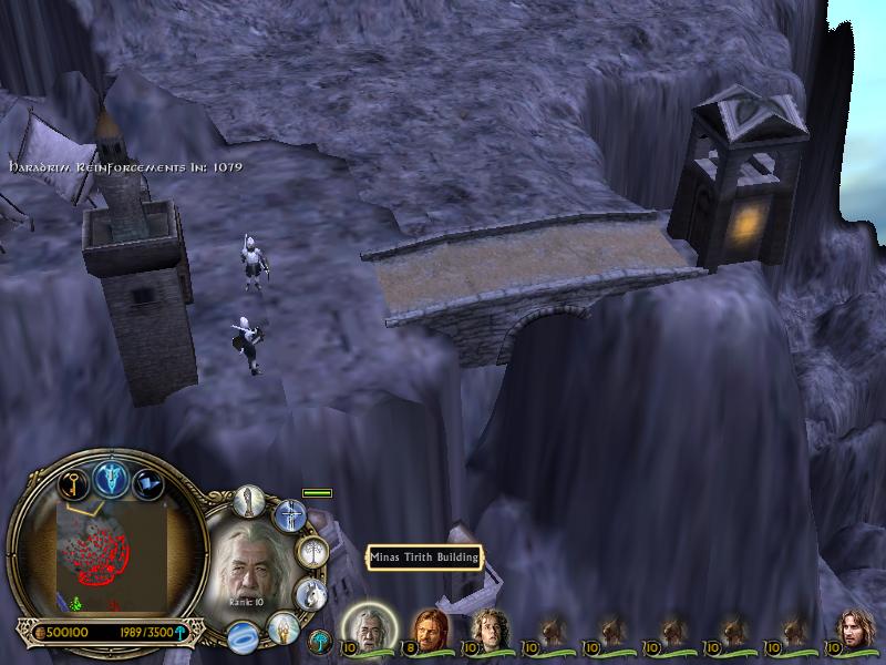A minas tirith with 6 rings, including amountain plateu behind MT where there is a beacon (just for show, gates on each level, you start with gandalf, boromir, pippin, faramir and 5 eagles (the eagles are towards the end of the mountain. Map created by Freeedy ----------------------------------------------------------- Note: There are two versions (3 player and a 4 player) This map is for skirmish ----------------------------------------------------------- Update - 27/2/2011: Screenshots added for the: Main gate, Beacon, Eagles and a shot of gandalf at the citadel ----------------------------------------------------------- Links / Downloads